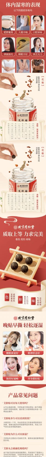 艾脑贴可以每天使用吗? 从专业角度来看,艾脐贴或艾草肚脐贴一般不提倡长期不停顿地使用,最好是三天使用期后休息一天再由此循环。 艾脐贴多久可以看到效果? 大概坚持一个月,你会发现自己的身体得到明显的改善,肠胃功能的好转是最明显的表现,而且人的气色也会变得越来越好。 艾脐贴为什么可以驱湿? 艾脐贴的主要成分花椒和艾草,都具有温经散寒驱湿的作用。